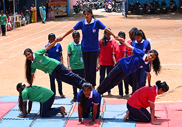 kho-kho, kabaddi, and athletics, along with indoor areas for yoga and warm-ups.